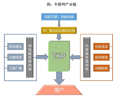 TSP ——Telematics Service Provider,車聯(lián)網(wǎng)服務(wù)運(yùn)營(yíng)商,在車聯(lián)網(wǎng)產(chǎn)業(yè)鏈居于核心地位。