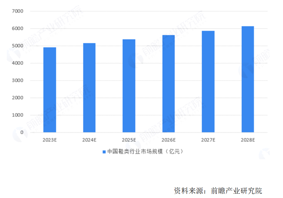 隨著線上零售等多種多樣銷售渠道的發(fā)展,中國居民對于鞋類產(chǎn)品的需求量會進一步增大,未來中國鞋類行業(yè)市場規(guī)模將保持增長趨勢,根據(jù)Euromonitor披露的數(shù)據(jù)顯示,預(yù)計2023-2028年中國鞋類行業(yè)市場規(guī)模將以年均增長率4.4%的趨勢增長,到2028年中國鞋類行業(yè)市場規(guī)模將達到6119億元。